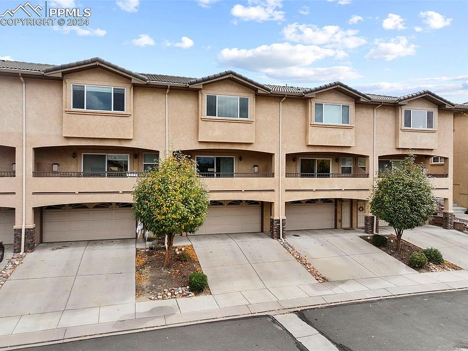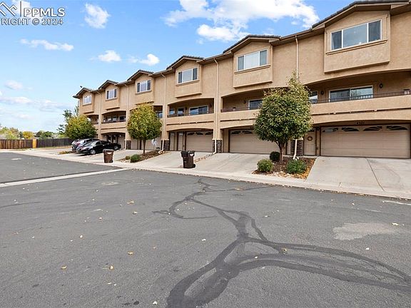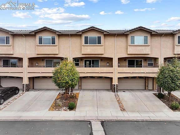 This fantastic townhome in Iron Horse Villas offers comfortable two-story living with a two-car attached garage. As you enter and head up the stairs, you’re welcomed into a spacious living area featuring wood floors, a cozy corner fireplace, and an open layout. The stylish kitchen includes a center island and comes complete with stainless steel appliances. Step out onto the patio to take in breathtaking views of Pikes Peak. The primary bedroom upstairs offers an attached 3/4 bathroom with a custom tile shower, solid surface countertops, and a roomy walk-in closet. Two additional bedrooms and a full hallway bathroom provide plenty of space. The patio off the kitchen is perfect for privacy, with open land behind the unit. The attached garage offers additional storage, and the home is ideally located with quick access to both Academy and Powers, as well as nearby parks, schools, and shopping.