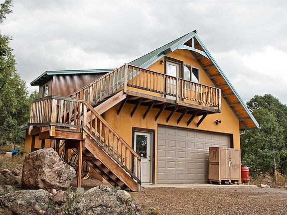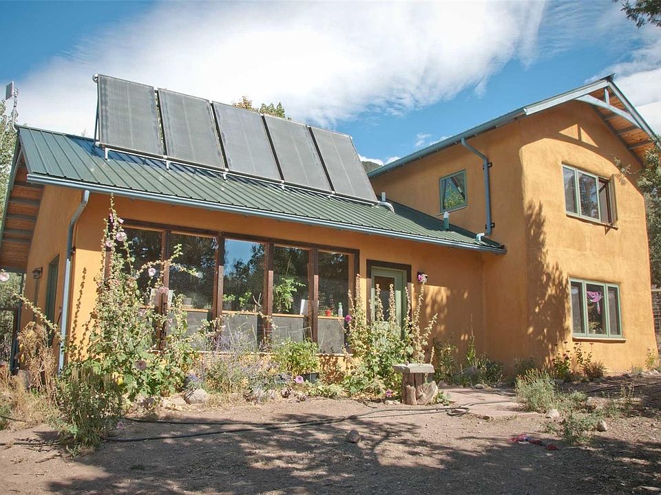 Built in 2011, this beautiful Straw-bale home built by Paul Koppana is designed conscientiously with an incredible Hot Water Solar system fueling in-floor radiant heat and domestic hot water; Heat Recovery Ventilation System; Superior Insulation, Natural Non-Toxic finishes. The four bedrooms are divided with two bedrooms and a bath with Steam Shower upstairs and two bedrooms and bath downstairs. The bedrooms have switches to turn off electrical currents in the bedrooms. Beautiful woods and clay walls. Property includes a detached Sauna Building, outdoor Masonry Oven with Smoker, and Fenced Garden. The detached over-sized 816sf 2 car garage w/radiant in-floor heat and a 1/2 bath is currently used as a workshop and over it is a 560sf potential apartment that has plumbing and electrical roughed in for kitchen and bathroom. This 2.09 Acre Lot borders the greenbelt of South Crestone Creek and an arroyo runs water by the land several months of the year.