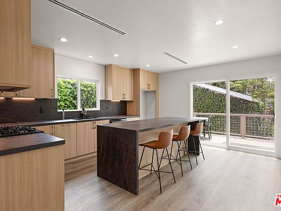 Set back from a tree-lined street in the highly sought-after North of Montana neighborhood, this beautifully renovated, move-in-ready traditional residence with an optional detached guest house blends timeless charm with modern updates throughout. The detached guesthouse is not currently included; it can be added for an additional $1,000 per month and comes with its own kitchen and washer/dryer (if one were to include the guesthouse it would add an additional ~400 square feet and an additional 1 bed and 1 bath). A brick pathway leads through the grassy front lawn to a delightful entry adorned by manicured gardens and blooming flowers. New floors extend from the formal living room, showcasing an attractive brick fireplace and wood-framed picture windows, into the formal dining room with a sliding glass door to the side patio. The adjacent kitchen has been extensively renovated with new appliances, an abundance of cabinetry, under lighting, a waterfall island, and stone backsplash. Bedrooms are spacious, and bathrooms are updated with on-trend fixtures and finishes for modern living. A walk-in closet has custom built-ins, and two rear bedrooms have direct backyard access. Outside, dine alfresco, entertain guests, barbecue, relax, and enjoy warm summer evenings from multiple patio spaces or gather with friends and family around the trellis-topped fire pit. Fresh hardscaping and landscaping, together with privacy hedges and climbing vines, provide the perfect ambiance for laughter and conversation. Additional conveniences include side-by-side laundry central to the bedrooms, new systems throughout, and storage shed. Enjoy close proximity to the numerous boutiques and fine dining options of Santa Monica and Brentwood, all just moments to world-famous beaches, parks, schools, freeways, and the very best of the Westside. Street parking is also easy and abundant. Available for immediate occupancy. Kitchen is virtually staged.