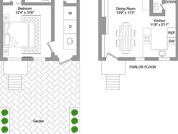 Five room, two bedroom duplex, consisting of the parlor and garden floors.