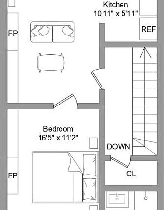 Spacious one bedroom apartment on the top floor of a brownstone.