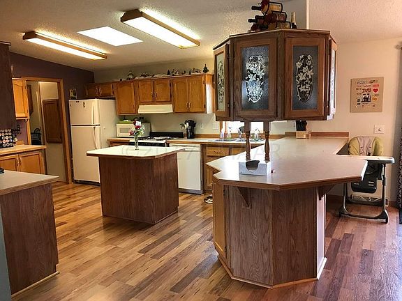 Spacious 2,408 sq ft home offers 4 bedrooms and 3 bathrooms. Well maintained with sheetrock and oak trim throughout main living areas. Newer Shaw flooring in Dining Room and Kitchen. Brand new 95% efficiency Stylecrest Vexar propane furnace just installed. Large breezeway. 3 stall attached garage with floor drain plus rear 9' x 7' door. 3 decks and gorgeous landscaping. Appliances included. Located near golf course.