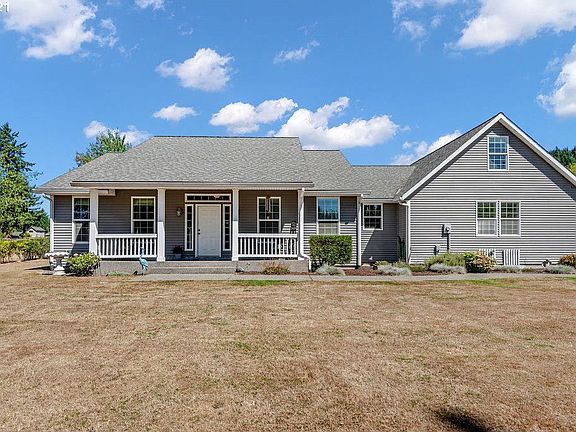 2,600+ sq. ft. home w/open floor concept. 24 x 36 shop w/ power. Living room with fireplace. Kitchen w/ granite & bamboo floors which carry into both dining areas. Master w/ jetted tub, double sinks & walk in shower. Laundry room with folding area & 1/2 bath. 2 bedrooms & bath on opposite side. Family room & den/office with new carpet. Tons of storage! Back patio with hot tub. New heat pump 2020. New roof being installed. 2 car garage, fenced yard & fruit trees. Just one minute to I-5.