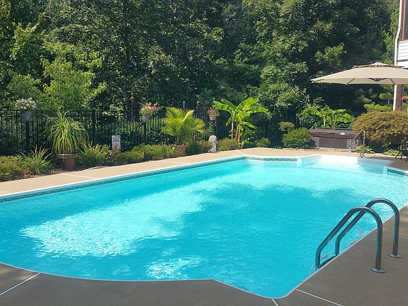 Ranch with circular drive in front and fully landscaped. Main level with 12 foot ceilings, master bedroom has trey ceiling w/lighting, ceiling fans in all bedrooms, office and main living areas. Kitchen and laundry updated with Quartzite counters and backsplash. Kitchen hearth room has stone fireplace (gas) and oak crown molding. 3 season room off of kitchen with smaller attached deck. Fully finished lower level with rec room, family room w/ceiling fan, wet bar with granite counter, bar & pass through have solid oak counter tops, 2 bedrooms (ceiling fan in 1) with Jack and Jill bath, and large storage room with 3 doors for full walkout to pool, hot tub and patio with enclosed ceiling and outdoor ceiling fans. Cool deck added to pool and surrounding patio in 2018. New structural retaining wall, fully landscaped behind swimming pool with view to golf course added in 2010. Heated garage upgraded 2012. New high end Carrier Furnaces [2] and Air Conditioners [2] installed 2014. New Aspen hot tub 2014 seats 6-7 people. New Infinity double hung windows with lifetime warranty installed 2015. Pool converted to salt water system, new Pentair pool heater 2016, new pool liner in 2018, and new Pentair pool pump installed 2019.