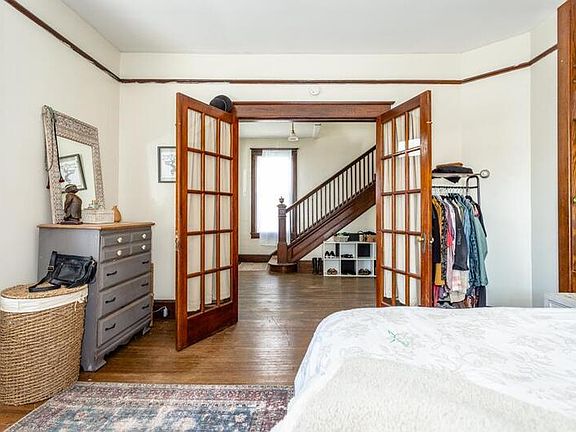 Looking for a lot of space in a downtown house? This is the house for you! High vaulted ceilings all throughout and having a large open layout entryway, livingroom, and kitchen allows for each person to have plenty of personal space even in the common areas. The bedrooms are large and each have their own closet space. There's even a bonus rooms that can be used for storage to maximize space in all the other rooms. There's a full shared bathroom upstairs, half bath downstairs, a back deck off the kitchen, large unfinished basement with a walk out door to the backyard, a garage, large yard, and porch! There's always plenty of parking space for 4 residents around the house.