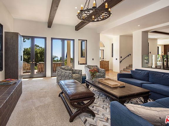HUGE PRICE ADJUSTMENT!! You are invited to visit and enjoy the opulent, resort-style property at 438 El Cielito Road. It is situated on an acre of lush landscape with magnificent views of the ocean and nearby islands. An outdoor gourmet kitchen with a wood-burning pizza oven and fire pit, an invigorating pool and cabana with built-in heaters, a full bar, and al fresco dining areas, are all at your disposal. The interior of the home is just as grand, featuring a primary bedroom suite with a private balcony, fireplace, and sitting area, a kitchen with double ovens, Sub Zero refrigerator/freezer, breakfast nook, and bar, a media room, as well as two bedrooms on the main floor. You can also explore the estate's private botanical gardens and winding paths. Central air, ocean-view terraces, and custom tile murals complete this exquisite home.
