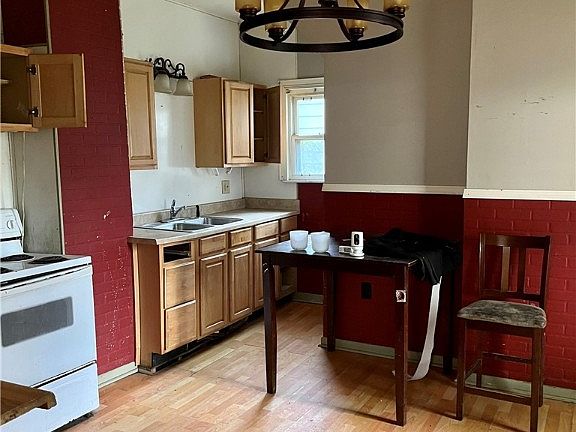 Large home with lots of potential. The full bathroom is located on the main level, along with a formal dining room, a living room with a stone fireplace, a very large eat in kitchen, a mud room off of the kitchen leading to the rear deck, and two additional rooms to be used as desired. The second floor has four bedrooms, one of which is captive. Outside, you will find off street parking in the rear and a shed. Home in need of TLC.
