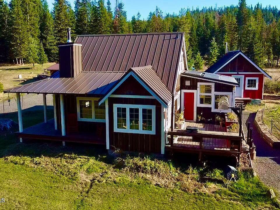 Quality of craftsmanship has to be seen in this beautifully handcrafted home! Perfectly situated on 8.97 acres next to year round creek. The interior boasts a main floor master ensuite with beautifully crafted walk-in shower, vaulted ceiling with reclaimed wood and rustic metal throughout that creates a spacious yet cozy environment. Farm style kitchen with plenty of storage. Sunroom thoughtfully crafted to grow food year round, complete with propagating table. The 1440 sqft shop with concrete floors and extra storage under two lean to's. Home powered by solar function with on grid power capabilities. Don't forget the guest cottage, extra storage shed, chicken coop established garden, fruit trees, firepit, and pond! 2500 gal water holding tank that can be collected and or hauled in, complete with a filtration system as well. Don't wait to live the homesteading lifestyle!