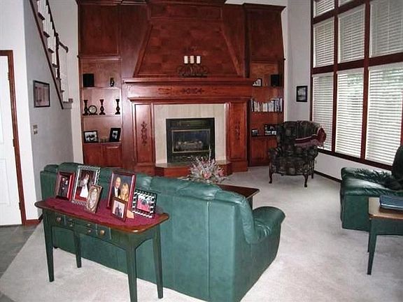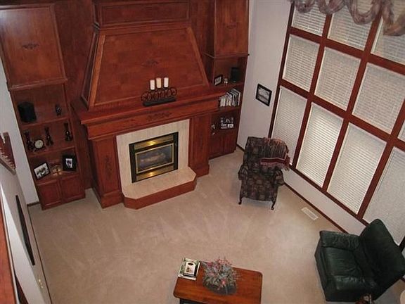 www.pro-linkrealty.com to view video tour of home. Stunning Custom Built Story 1/2 with Master Suite on Main Floor, Great Room with 17' ceilings, spectacular cherry wood hearth, built-in bookshelves and cabinets, gas fireplace, open floor plan, gourmet kitchen with new quartz countertop for center island, new stainless steel appliances, new sandstone sink and faucet system. Picturesque lot with direct view of pond. Full finished basement with separate walk-up to garage, game room with wet-bar, family room with fireplace, potential fourth bedroom with large walk-in closet adjacent to 4th bath. Large deck, front porch and exceptional maintenance await new owners.