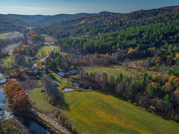 The North River Farm comprises 183.5 acres, 15 of which is high quality farmland, and the balance in forest with 3,635 feet of frontage along the East Branch of the North River, one of the premier trout fishing tributaries of the Deerfield River in Massachusetts. A 2,352 sqft home with attached one car garage, 4 barns, a three car garage, and a shed occupy the south east corner of the property. There is 304.19 feet of frontage on the west side of Jacksonville Road (Route 112), split frontage totaling 2,120 feet ± on the north side of Thompson Road, and 1,018.05 feet on the east side of Stranahan Road. Available utilities along these frontages include electricity and telephone service. There is an additional 1.9 acre lot on the corner of Thompson and Rt 112. The forest has been selectively logged in the past and supports a healthy deer population. The property is of interest to conservation organizations because of the long stretch or the East Branch of the North River.