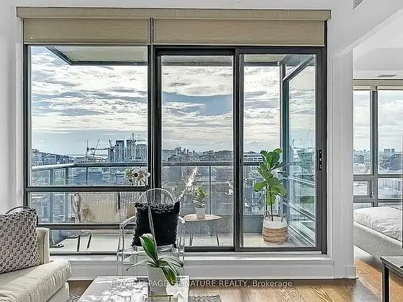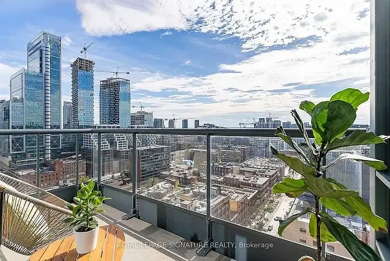 All Utilities and 1 Parking Included! Sun drenched, southwest facing suite in the heart of vibrant King West. Featuring 9ft ceilings and floor to ceiling windows, this bright and spacious unit offers a smart, efficient layout with no wasted space. Enjoy a large, functional balcony with some of the best west facing views in the city, perfect for sunsets over the skyline. The kitchen is designed with full sized stainless steel appliances, granite countertops, a breakfast bar and ample cabinetry, ideal for both cooking and entertaining. The living space is warm and inviting, with natural light pouring in from wall to wall windows. The bedroom accommodates a bed and workspace, offering comfort and functionality. This well managed, quiet building known for its quality and prime location. Steps to the TTC, groceries, restaurants, the Financial District, Roy Thomson Hall, Rogers Centre, CN Tower, the Well, and much more.