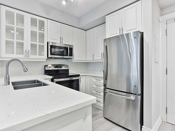 Best Deal! Beautifully Renovated Open Concept Unit @ The Hudson.Featuring Chefs Kitchen W/ Quartz Counters, Top Of The Line S/S Appliances And Brand New Wood Flooring. Unit Comes With South Facing Oversized Balcony, 1 Underground Parking And 9'Ceilings. All Utilities Included (Heat,Hydro + Water). 24Hrs Concierge, Garden Terrace W/ Bbq, Media Room & Billiards, Private Dining Room W/ Servery,Guest Parking, Convenient Access To Ttc & Hwy.
