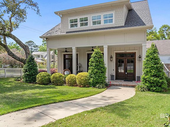 Prime location in Fairhope’s Fruit & Nut District, this Gold Fortified home was built by Adcock Builders in 2021 and sits on a Corner Lot surrounded by a white picket Fence. Features Hardwood Floors in the Main living areas, High Ceilings, Gas Fireplace in Living Room, Kitchen with Quartz and Granite Countertops, Stainless Steel Appliances, Center Island, Breakfast Bar, Open Dining Area, Separate Office, Primary Bedroom down with adjoining Bath with Soaking Tub and Separate Shower, Two Bedrooms upstairs with Private Baths and Two Bonus Rooms up (currently Art and Exercise Rooms), Screened Porch with Outdoor Fireplace, Double Carport with Storage Room and Stairs to Room above Carport that could be finished out for multiple uses. Tankless Hot Water and Whole House Water Filtration System. Only blocks to Downtown Fairhope and Mobile Bay! Buyer to verify all information during due diligence.