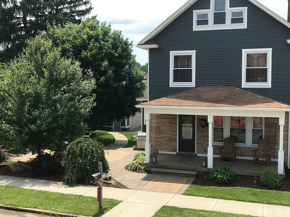Captivating 4 bedroom home situated in the heart of Historic Harmony with astounding attributes throughout! Welcoming covered front porch w/ wood plank stamped concrete. Inside you will find that much of the home as been thoughtfully updated while preserving the original wood work & character. Lovely family rm w/ brick fireplace & built-in shelving leads to dining room & kitchen that's made for entertaining! Kitchen offers plentiful cabinetry & concrete countertops, S.S. appliances & coffee bar!When it's time to unwind enjoy your owner's suite w/reading nook,concrete vanity top & tiled shower. 2 sizable guest rooms offer plush carpet,ceiling fan/light combo.4th bedrm spans entire 3rd floor! One-of-a-kind outside oasis from the stamped concrete patio, Pergula & natural stone pond with cascading waterfall. Aggregate concrete walk way leads to newer 2 story 2 car garage & spacious level rear yard. Short distance to nostalgic Historic Harmony & Main St. Zelie! Mins. to Rt. 19 & I79!