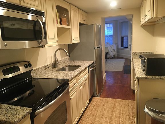 Gorgeous 2-bedroom apartment available in Back Bay. Updated apartment features central air conditioning, high ceilings, in unit w/d, granite counters, stainless appliances, marble bathroom, recessed lighting, and large private back patio! Steps from the Charles River, Fenway Park, Copley Place, Green Line (Hynes T Stop), Commuter Rail, and Newbury Street. Available April 1st (flexibility with move-in date). Tenant responsible for cable/electricity. Owner pays water, trash removal, snow removal, backyard/patio clean up.
