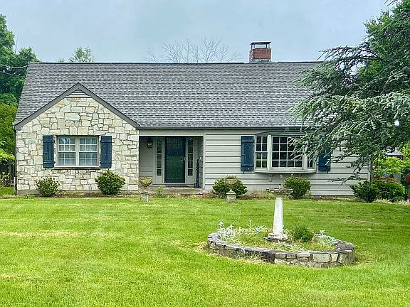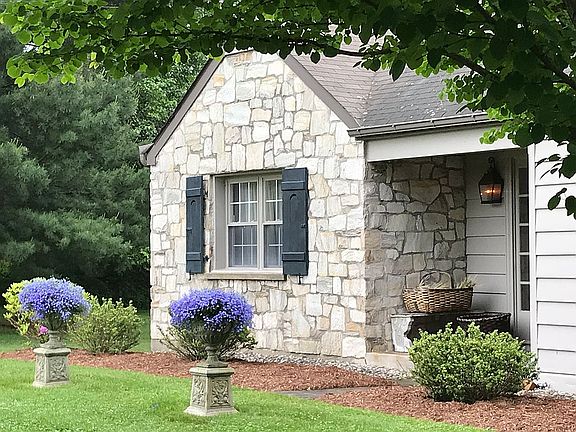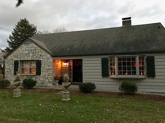 Holland Township NJ: Quaint Cape Cod on a little over 1 acre. Very private with many diverse mature trees, gardens, and woodland/mountain views. Built in 1950 by Stone Mason owner, this home consists of solid block construction with stone, stucco exterior. Large stone fireplace graces the living room. Late 1800s shutters rescued from historic home. Upstairs Master bedroom suite with vaulted ceilings, sitting room, large Master bath with ample walk-in closet. Large 2 car detached garage. Parking for up to 6 vehicles in driveway. Expansive rear screened-in porch leads to 38’ x 19’ in-ground pool. All new appliances included. Very unique custom home with charm and character.