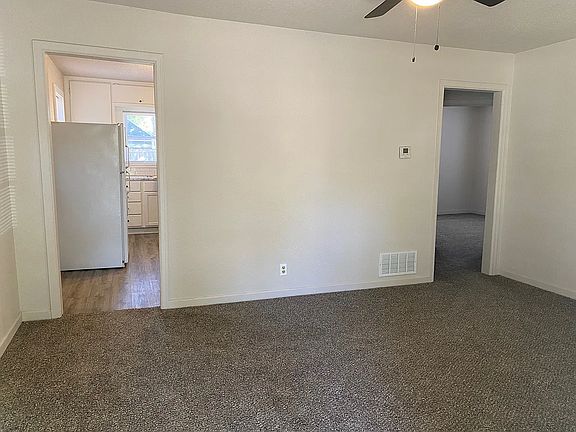 Nice two bedroom home, carpet and wood flooring. Stove and refrigerator provided. Washer and dryer connections. Window unit for air conditioning and central heat. Large partially fenced back yard. Driveway included along with street parking $850 per month. No pets preferred; however, small dogs will be allowed for $30 additional fee per month. No smoking. One year lease is a must, after that, it will be month-to-month. All utilities (water, electric, gas and trash) will be paid by renter. Renter pays all utilities, one year lease required, small pet allowed for $30 per month fee, one month's rent deposit, no smoking, renter required to mow yard.