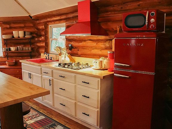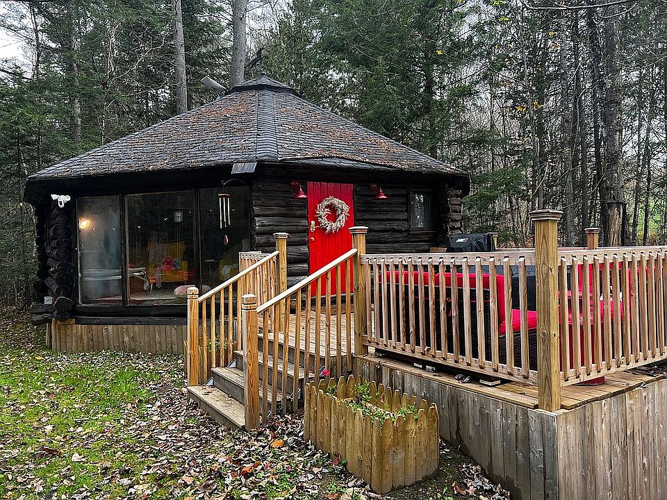 Log cabin - cedar logs, built 1995 on 15 wooded acres. 800 sq ft. Completely remodeled on 2023 currently making 2000-4000 monthly in rents in Airbnb. Easy to show well kept and ready to host up to 6 people. Stream all around. It has an utility shed, a ski equipment room, and a semi finished cabin by the hill.