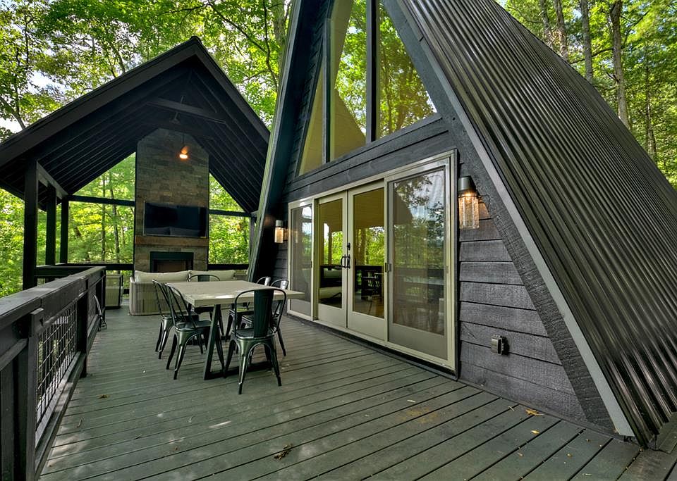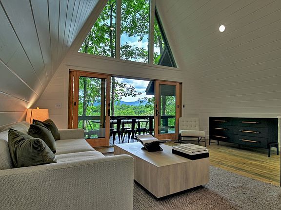 Welcome to 438 Ridge Road, a renovated modern rustic A-frame that blends the charm of mountain living with luxury. Nestled amongst the trees while conveniently located, this remarkable property boasts breathtaking year-round mountain views and expansive frontage along the pristine Young Cane Creek, making it the perfect retreat or investment opportunity. Upon entering the retreat, you are greeted by soaring ceilings and an abundance of natural light streaming through a wall of windows, highlighting the rich wood accents and contemporary finishes. The open-concept layout seamlessly connects the spacious living area with a gourmet kitchen, perfect for entertaining friends and family. Step outside to discover your own slice of paradise. The expansive deck provides an ideal setting for al fresco dining or unwinding while taking in the crisp mountain air and the gentle sounds of the river. With direct access to Young Cane Creek, outdoor adventures await you right at your doorstep—whether it's fishing, kayaking, or simply enjoying the tranquility of nature. This property is not only a personal escape but also an exceptional investment with incredible potential for short-term rental income. Its prime location, combined with unique features and luxury amenities, makes 438 Ridge Road a sought-after destination for vacationers looking to embrace the beauty of mountain life. Don't miss this opportunity to own a piece of heaven in the mountains. Schedule your private tour today and experience the beauty and serenity of 438 Ridge Road for yourself!