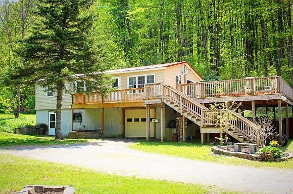 Come surround yourself with nature in this 3 bedroom, 1 bath home on over 4 luscious acres of land! All new windows, vinyl siding, & a metal roof make this home efficient & carefree. 1 car garage & carport for 2 sits just under your very own MEGADECK! The deck is huge & wraps half way around the house, leading inside with 2 double sliders- perfect for cooking out all year long! Freshly painted interior, cathedral ceilings, & many new updates will seal the deal! Soapstone woodstove in basement will help to supplement fuel costs! Berries, fruit trees, & mammoth rhododendrons- oh my! Call today!