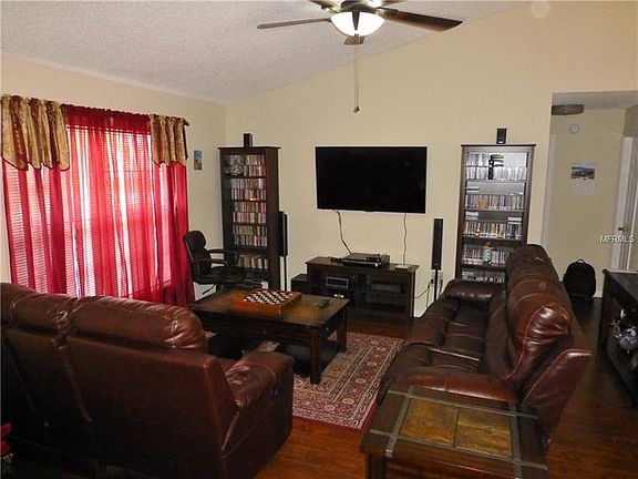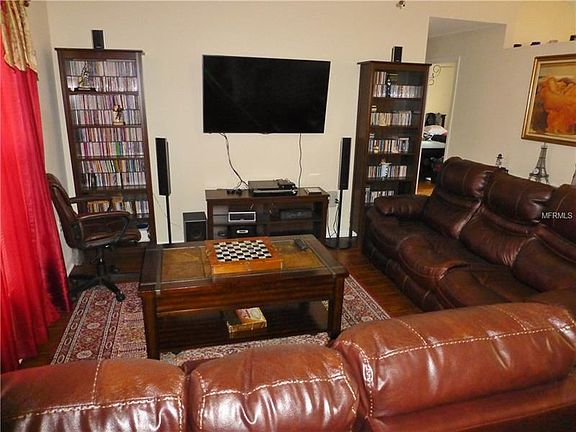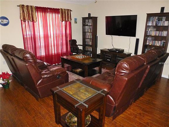 Three bedroom, 2 bathroom detached home with a screened pool close to Champions Gate and Interstate 4. The pool faces south and there are no rear neighbours, there is also a retention pond area on one side. There are tiles in the living area and laminate flooring in the bedrooms for easy maintenance. The house is situated in a small established development and a Publix supermarket and other shops are only one minute away, Champions Gate is only 5 minutes away. There is an eating area by the kitchen and the spacious master bedroom has a walk in closet.