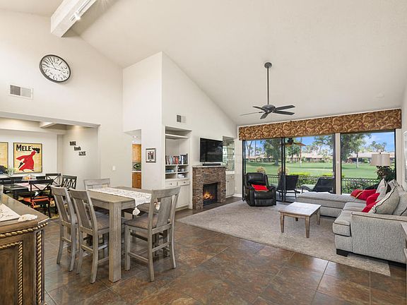 Welcome to Monterey Country Club in Palm Desert; one of Coachella Valley's iconic private clubs located centrally for easy access to all parts of the valley. This 2BD/2BA + Den office 300 plan owns with spectacular unobstructed views of FAIRWAY and GOLF COURSE. Enter through a private court-yard to a bright & airy living and dining room featuring a fireplace, high ceilings, and more VIEWS! The atrium is converted, kitchen with upgraded high end cabinetry & appliances, large pantry and vast counters. The den/office is ample area for guests to relax, watch TV, take a zoom call and get some office work done. The guest bedroom is en-suite with its own bathroom. The serene primary bedroom suite has a tremendous walk-in closet, dual sinks and a large shower. Enjoy the fabulous lifestyle the desert has to offer and experience gorgeous sunsets from the enclosed extended back patio perfect for entertaining family and guests! Monterey Country Club has 27 holes of championship golf, pickleball, tennis, bocce ball, updated fitness center, pro shops and a full-service clubhouse with many social events!