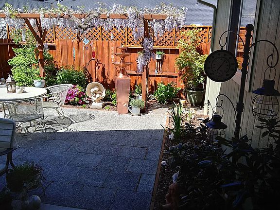 6 homes located on private dead end street, great for children or seniors. Low maintenance yard, great back yard for entertaining. Kitchen has granite counters with all new KITCHEN AID appliances. Granite counters in both bathrooms and washroom and all window ceils. Exterior painted 2018 with high quality paint. Complete fenced yard that has been refinished. Drop down stairs to large attic. electrical outlets with timer along roof line for easy decorating.