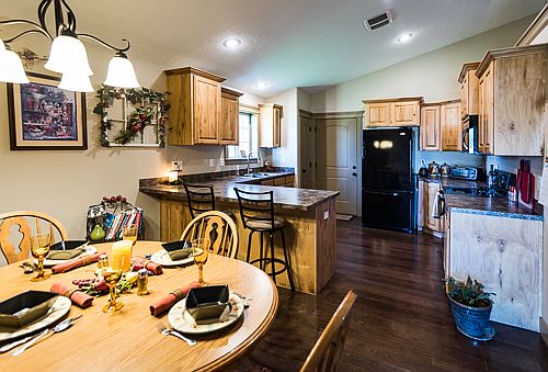 Impeccable home set on a quiet cul-de-sac, framed by lush trees, foliage and gorgeous landscaped yard. Enter via sheltered walkway to front porch. Step into the spotless living area highlighted by vaulted ceilings, decorative ledges and cozy custom built-in gas fireplace. Open layout flows to dining area, kitchen breakfast bar and functional kitchen, showcasing hickory cabinets, concealed hinges and wood floor. Main level laundry, inclueds washer, dryer, more custom storage plus folding area. Master bedroom suite features attached, custom tiled bath with separate tub and shower. Plus two more bedrooms and guest bath on main level. Lower level is framed and ready for two bedrooms, bath and more. Large manicured backyard with cozy covered patio for barbecues.