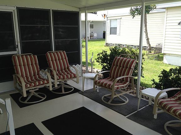 Bright and sunny! This 2 bedroom/2 bath home has windows and light that make it a true Florida dream! Step inside the welcoming kitchen and continue on to the open sunroom, that attaches to the kitchen through an open serve-through. Enjoy lots of space for entertaining in the beautifully decorated sitting room and living room, that provide ample space for lots of your new Colony Cove friends. The baths and bedrooms are beautifully decorated in soothing colors and up-to-date styling. Just bring your suitcase and enjoy your own home away from home, in this lovely Florida manufactured double-wide home. Lot Rent: $818/Month