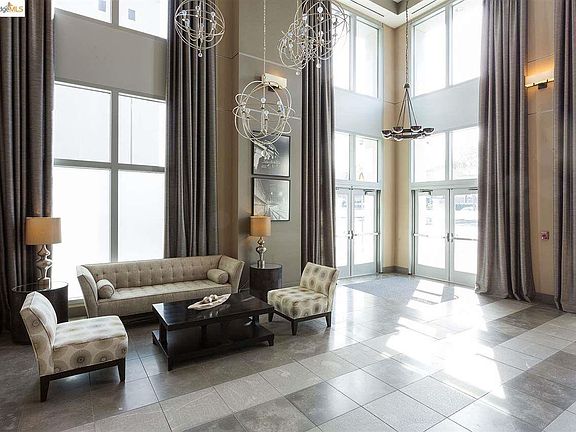 Life at the Broadway Grand in the Vibrant Uptown Neighborhood offers urban life with a 98 Walk Score with an amazing choice of restaurants, brew pubs, shopping and live entertainment. Adjacent to the financial district, Lake Merritt, China Town, Jack London Square, Fox Theater, the Paramount and the YMCA. San Francisco is a 17-minute commute (4-minute walk to Bart & 13 minute ride on Bart). Deeded parking in secure garage with additional storage bin. Building's central courtyard with café tables/chairs among lush plantings and fountain. Gourmet Kitchen features Frigidaire professional series stainless steel refrigerator, convection microwave, gas range with second convection oven, Bosch ultra-quiet dishwasher, chef's deep-sink, quartz counters, glass tile backsplash and recessed lighting * Bath with radiant heat and new 12/24-inch tile floor, stone counter and stone tub/shower surround * LG Washer/Dryer full size energy-efficient with steam * LG Air-Conditioned bedroom.