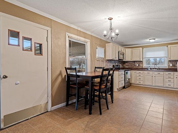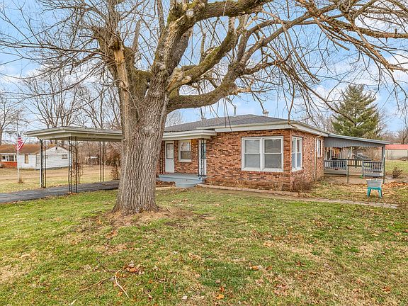 Move in ready 3 bedroom and 1 bath brick home featuring a 1/2 acre level lot with country views and public utilities. Open floor plan with large rooms and hardwood floors. Kitchen features custom cabinets with black-splash and stainless steel appliances. Updated bath and main floor laundry. Covered parking, covered deck, fenced yard, and shed. Feel like you are in the country while being close to town. Corner lot. Refrigerator stays. Come see this one today!