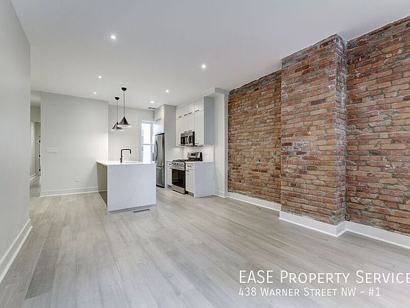 Step into 438 Warner Street! Nestled on a quiet side-street in the heart of Shaw, this 2 bed/2 bath apartment boasts a brand new top-to-bottom renovation, offering a blank canvas for your unique style. Encompassing the entire main level of a lovely two-unit rowhome, it showcases luxury finishes, a private backyard, and off-street parking included in rent. Your new home awaits! Apartment Features: Entire property was just completely gut-renovated a year ago Occupies the entire main level (not basement!) of a two-unit rowhome Beautiful hardwood flooring throughout Bright and open main living area with beautiful exposed brick wall Luxury kitchen with stainless steel appliances, marble countertops and bar seating First full bathroom in hallway Good sized first bedroom with two closets Spacious primary bedroom at back of apartment Ensuite primary bathroom with high-end finishes Private backyard off of primary bedroom, perfect for entertaining your guests! Washer/Dryer in unit Bonus storage space in basement of building. Parking: One off-street parking space included in rent. Utilities: Tenants are responsible for gas and electric. Water is included in rent. Lease Terms: Available May 10th. Minimum 12 month lease. Application fee is $35 and includes a credit check. Security deposit equal to one month's rent due upon lease signing. One cat would be considered with an additional $50/month pet fee. Sorry, no dogs. Location: Warner Street is a quiet, tucked-away street in the heart of Shaw. A quick walk to the Shaw/Howard U Metro Station. A few blocks away from: Giant, Compass Coffee, Dacha Beer Garden, Ivy & Coney, Big Bear Cafe and much more. Also a convenient location for commuters with very easy access to 395.