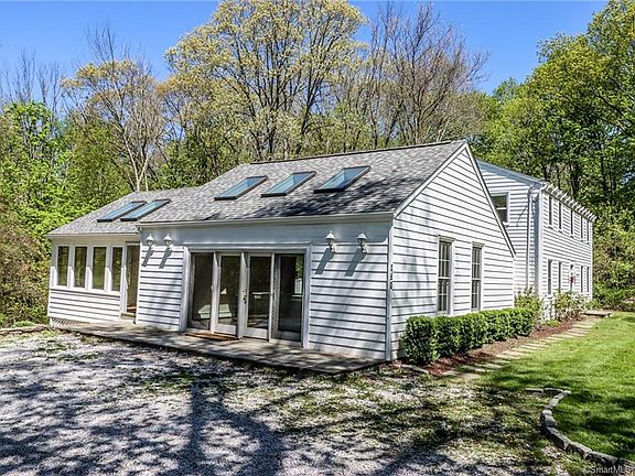 A Happy Alternative to City Living Perfectly Private with Scenic Views from Every Room. This Renovated 3-4 Bedroom 2.5 Colonial exudes Charm and Character and is simply perfect for everyday living or a weekend retreat. Privately nestled on 1.6 Tranquil Acres with spacious parking or room to build your Garage(s. Numerous windows provide abundant sunlight and sumptuous views from every direction. High ceilings and exposed beams add to this home's charm. The unique sunny Chef's Kitchen boasts of a brick accent wall featuring 2 large islands with marble counters, newer S/S wall ovens and dishwasher, vaulted ceiling, skylights and French doors - a real delight The sun filled Sun Room Gallery is lined with French Doors which open to a large private deck making entertaining a breeze. The versatile Formal Dining Room features a brick Fireplace for dining ambience but could also be used as a Family Room. The Front to Back Living Room is spacious, light and bright. Working remotely? There is an Office as well. Gleaming Refinished Hardwood floors throughout. The Master Bedroom has a Master Bath with Dual Pedestal Sinks. The 3 Season enclosed porch has incredible views. If you are looking for a Classic Colonial that meets Modern Flare and will accommodate today's lifestyle this home is a must see Strategically located with a short drive to the Merritt Parkway, 10 minutes to Train and Downtown Westport/shopping and just 65 Min train ride to NYC.