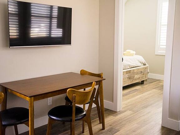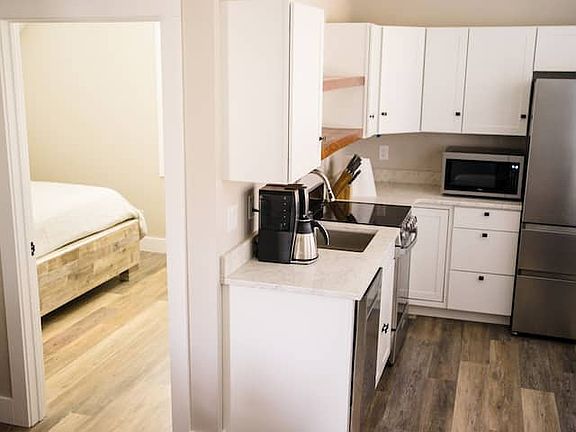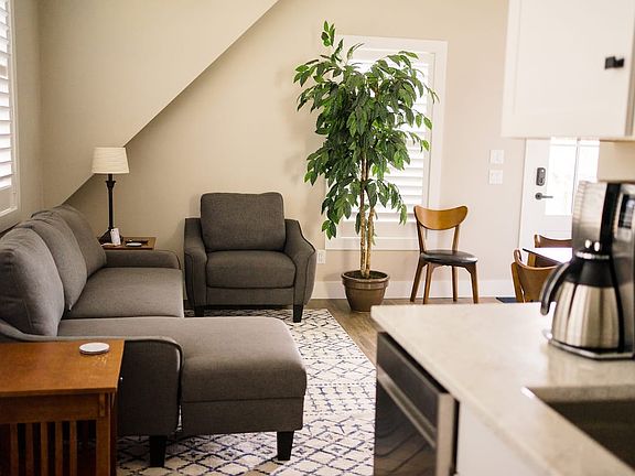 This fully furnished apartment (open to offering unfurnished) is located above a detached garage. It is simple, cozy, modern, and bright. Entering, you will find an open kitchen with all appliances. The family room has a very comfortable double sofa bed and breakfast table. A queen bed in the master bedroom and a full bathroom. This apartment is perfect for accommodating up to two people in a modern and functional environment. Close to Brevard College and within walking distance of downtown Brevard. Twelve month lease duration. Utility costs included. No smoking in the property.