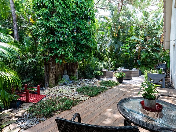 Beautifully updated and elegantly styled 3BR 2BA 2CG CBS home in the gated community of Bent Tree, minutes away from lovely shops, restaurants and A rated schools. The large professionally designed Zen garden in back is secluded and serene with lush tropical landscaping and gas fire pit.The house is architecturally attractive, with double glass entry doors, vaulted ceilings, all plantation shutters, crown molding, and engineered wood on all bedroom floors. A gourmet gas kitchen features wood cabinetry, double pantries, and all new GE Profile appliances. Master BR offers updated dual vanities, soaking tub, walk in shower and private toilet. Second bath is fully updated. Portable whole house generator, and hurricane protection for all windows and doors. See Supplement...