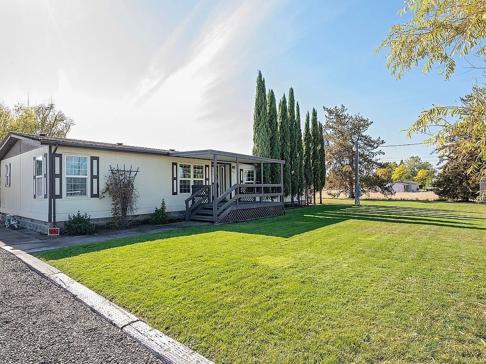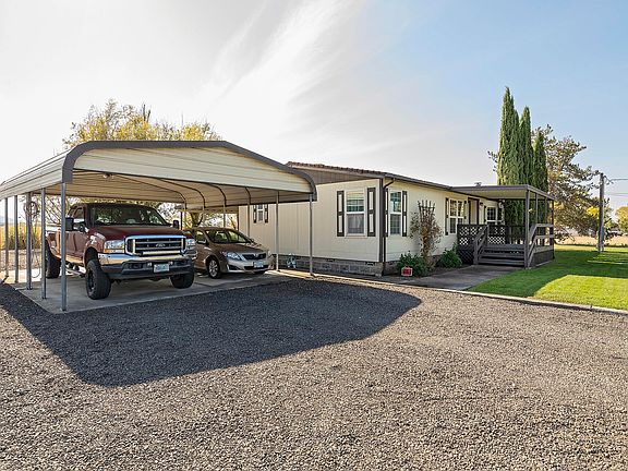 Wonderfully maintained three-bedroom, two-bathroom manufactured home on 5 level acres. You have to see this one for yourself! This home has been well taken care of and has tons of it's original charm. The primary bedroom is well sized and has an attached en-suite. The two guest bedrooms are at the other end of the home and share a large full bathroom equipped with a soaking tub! Outside of the home you will see a great porch that looks out onto the garden like front yard. The backyard deck is covered and is large enough for entertaining. You will enjoy the large yard surrounded by plenty of flat land ready for your future ideas. Everyone will love the 40x48 shop with double RV doors and concrete floors. Their is even a loft inside the shop complete with power and hot water! This home sits on 5 level acres ready for it's new owner!