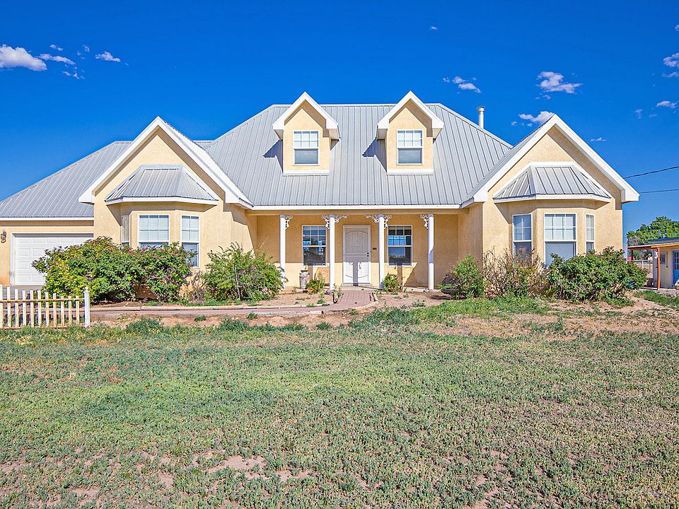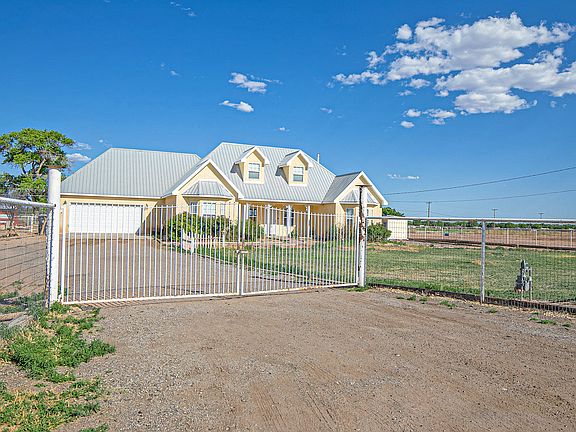 Fabulous custom home on one, completely pipe fenced and gated acre in Los Chavez. Highlights include a jetted, garden tub and separate walk-in shower in the master bath, a large, versatile loft, split floor plan, lots of windows, no carpet and metal roof. Located on a dead-end street, the quiet country setting offers beautiful Manzano Mt views from the covered patio, serene water fountain, garden shed and plenty of room for your animals, toys and large trailers/RV. You don't want to miss out on this great opportunity!