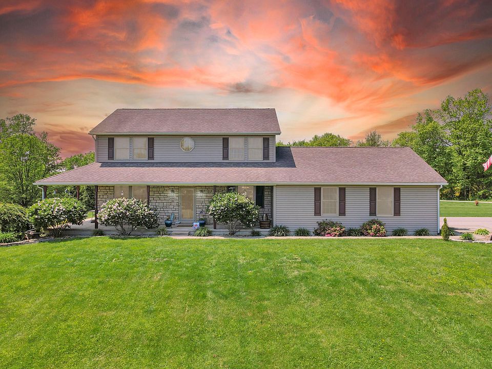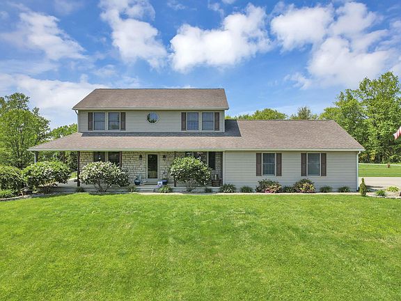 Dreaming of country living but want to remain near shopping, dining, schools and doctors? This welcoming, two-story on more than 2.5 acres could be your new home sweet home. Well maintained and built with 2x6 construction, wood floors, and solid 6 panel doors, it offers a floor plan you'll love. Has newer water heater, dishwasher, and sump pump with battery back up. Generator hook-up available. Full finished, basement has access from garage and boasts rec space, private office, and an AMAZING full bath. A 2 1/2 car garage has room for all the big toys, while the Amish-built, 12'x16' shed stores even more. Just a few minutes drive to downtown Granville, but when you step outside all you hear is... nothing but nature.