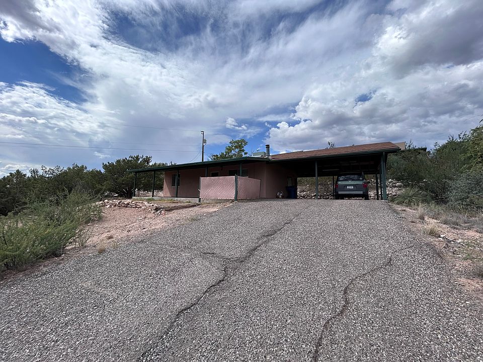 This inviting 2-bedroom, 1-bathroom home offers comfort, convenience, and beautiful surroundings. The property features an attached 2-car covered parking area and a welcoming covered porch at the entrance perfect for relaxing evenings and enjoying Arizona's stunning lightning shows. Situated on a spacious acre hillside parcel, the home backs up to the hillside and expansive government land sprawls to the left of the home providing extra privacy and scenic views as well as endless hiking opportunities. A storage shed is included for all your tools and outdoor gear. There's also a wonderful spot for gardening ideal for anyone with a green thumb. This property is located in Rimrock, Arizona. It has a gas station and convienence store less than 3 miles away and a several restaurants for when you don't feel like cooking as well as several thrift stores, antique stores and a dollar store. Additionally their are several churches, a post office and a fire department less than 5 miles away. You must-see to truly appreciate all it has to offer! Renter is responsible for water, electric and trash. First and last months rent are due at time of contract. No more than three pets. Bi-monthly inspections will be required. 6 months minimum lease agreement