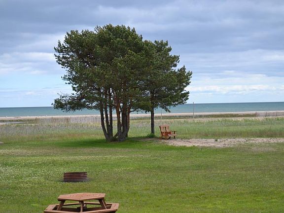 Huron Sands Condominium~ Very Well maintained complex with assoc dues only $100.00 mo., One bedroom 1 full bath lower corner unit, Large breakfast bar separates the kitchen from the living room which gives you extra counter space and an abundance of extra storage. One of the few unit with a stack-able washer & dryer, Berber carpet, newer air conditioner unit, Great view of Lake Huron, enjoy the many boardwalks, picnic area's, fire pits, and common area decks. Association dues include: Lawn maintenance, garbage pick-up, outside maintenance, all you do is unlock your door when you visit and lock it when you leave. One of the few places on Lake Huron for a reasonable price.