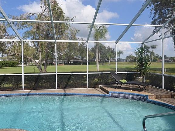 Welcome to a gorgeous vacation rental available January 2018. We waited to put this on the market for the remodeling to be completed. Now this is a beautifully furnished pool home on the 10th tee. Three bedrooms, two baths plus a den. Spacious, bright & open floor plan with a brand new kitchen. Covered lanai with a sitting area and heated pool, grill and summer kitchen. Large corner lot; excellent location across the side street is the club. Peridia is a professional course and you can be a member (optional) for $120/month for a couple, plus $40 food and beverage for the month.
