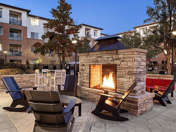 - Exterior features: 9-11' ceilings, Bicycle storage, Breakfast bars*, Built-in bookshelves, Built-in desks, Business Center, Coffee bar, Courtyard, Crown molding, Custom-designed Chestnut/Ankara finish cabinets, Efficient Appliances, Electric fireplaces with carved wood mantels, Energy efficient appliances, Free Weights, Garden-style tubs, Grills, Heating included in rent, Island kitchens, Maintenance on-site, Management on-site, Modern track lighting, Newly renovated apartment homes, On-Site Maintenance, On-Site Management, Pet play area, Picnic Area, Spa/hottub, Sundeck, TV Lounge, USB charging outlets throughout