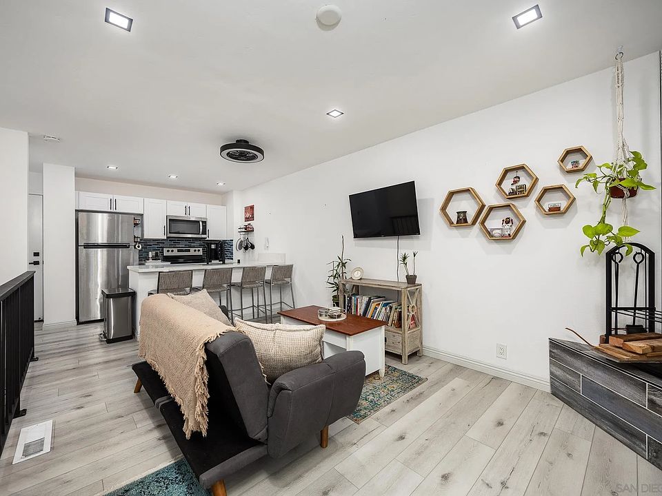 Completely updated Point Loma townhouse is situated in an ideal location; only 5 minutes from Ocean Beach and everything else San Diego has to offer. This two-story townhome offers an amazing layout for entertaining with a living room and kitchen upstairs, and with bedroom downstairs. Recent upgrades include new luxury vinyl flooring, paint, and appliances. Mere minutes from all beaches, with 5 minutes by car gives you access to the 5 & 8 freeways. Entering the home, you will be met with a dedicated laundry room, hallway linen closet, primary bedroom, and completely updated bathroom. Back upstairs, open concept living and dining room with a balcony that allows slight views of Seaworld and fireworks. This unit also comes with TWO tandem parking spaces, central heating, and air. Amazing opportunity for a first time buyer, investor or someone looking to downsize.