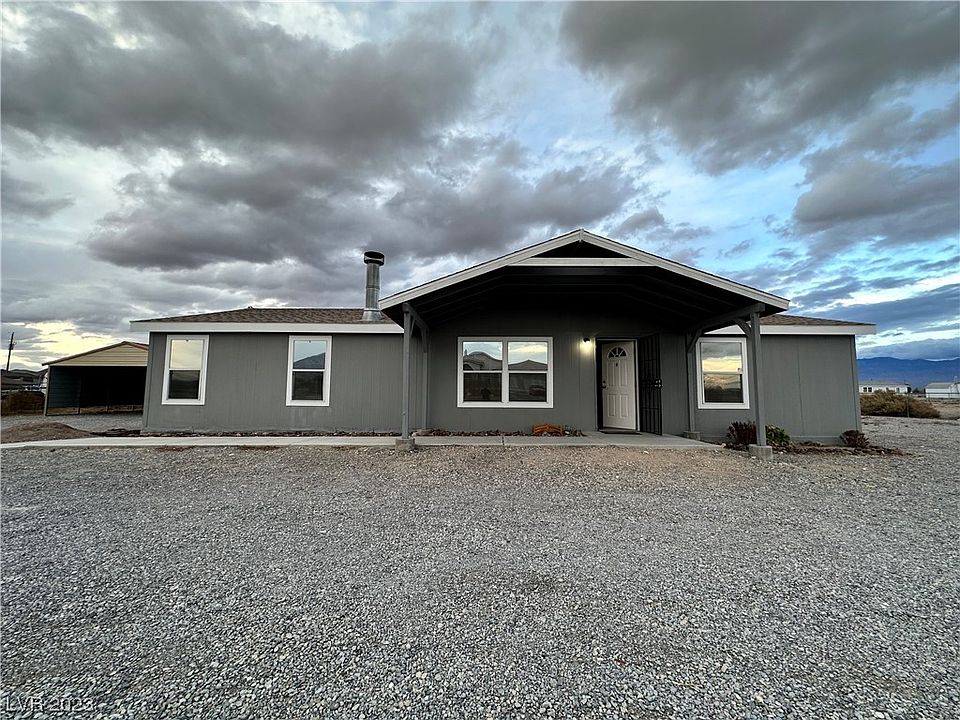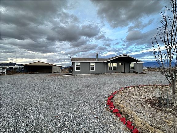 This beautifully remodeled 3 bedroom 2 bathroom home sits on an acre lot and has been converted to real property. The home features waterproof laminate flooring throughout, stainless steel appliances and a tile finish across all kitchen countertops. The kitchen has a wooden butcher style island, and an open living and dining area transition. The outdoor area boasts a spacious, detached, covered shed which is ideal for plenty of parking space and leads into a finished workshop area room outdoors. The backyard has a covered patio as well as another workshop shed and a gardening box. The home is surrounded by stunning 360 mountain views.