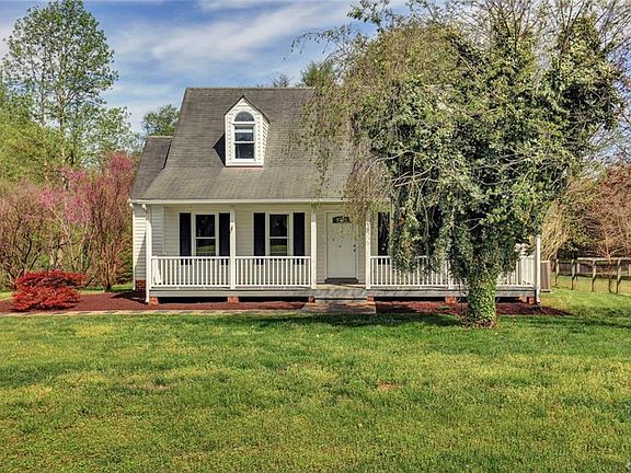 Welcome home to this beautiful cape cod on 3 acres in central Powhatan! As you enter the home through the covered, country front porch, you'll notice the openness of the living area, set around the fireplace. The living area, dining area, and kitchen all flow nicely together, for the perfect combination of meals, entertaining, and relaxing, with laminate floors and fresh paint throughout. The kitchen offers all appliances, ample cabinet space, backsplash, pantry, and access to the sunroom at the back of the home. The first floor Master Bedroom is attached to the downstairs full bath, with the utility/laundry room also conveniently close by. Upstairs you'll find two more sizable bedrooms with new, plush carpet, and a full bath between. Outdoors, this 3-acre property has a lot to offer, with a huge, green front yard, a big back deck, firepit, beautiful trees, and a stable/shed. All this just minutes from Powhatan's most popular shopping and dining. Don't miss out on this awesome home in a HOT price range!