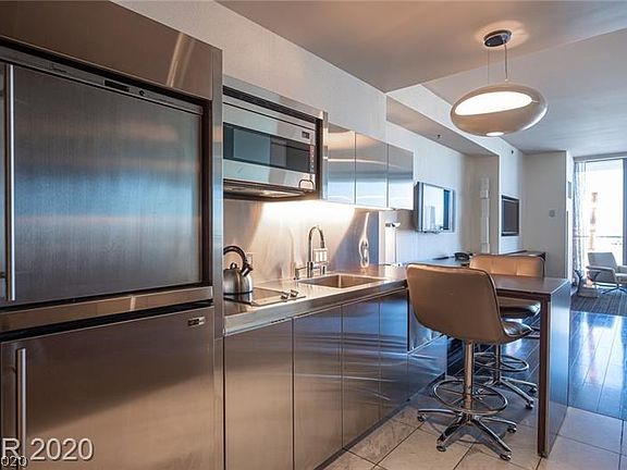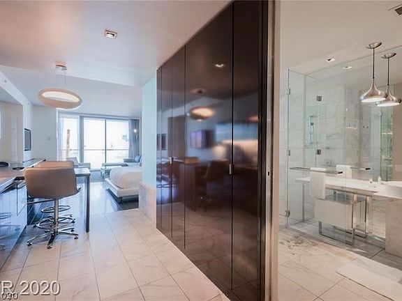 Fully furnished studio with BALCONY facing the Las Vegas Strip! Upscale modern decor with king bed and queen sofa sleeper, stainless steel appliances, 2 flat-screen TVs, large rainfall shower and tub, hardwood and marble floors! World-class amenities with direct access to casino, restaurants, spa, movie theater, pool, and more! Fantastic ownership discounts and privileges! Great studio home, 2nd home, or short-term vacation rental.
