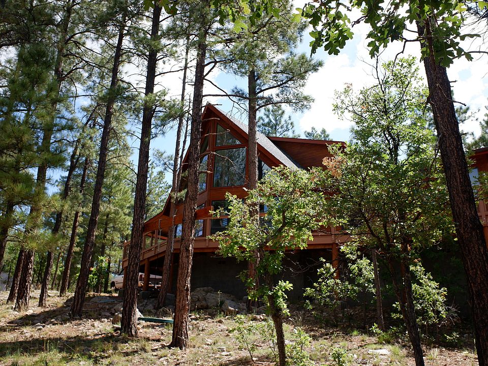This is the location and mountain Cabin you have dreamed of. It is at the end of a cul-de-sac on 1.54 acres backing a Greenbelt for privacy. Greatroom with vaulted ceiling and huge wall of windows facing the forest. Master suite and 2 more bedrooms on main floor and 2 baths. Then upstairs a great family/TV room w/ wood-burning fireplace and separate bunk room and bath. Wow, The views are extraordinary and only an hour northeast of Payson.