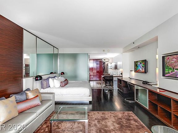 This is a 22nd Floor studio suite at Palms Place. It has City and Mountain views. Fully furnished unit Features Stainless Steel Appliances, King Bed, Flat Screen TV's, Island Kitchen, Bath with Shower & Separate Tub plus Much More.