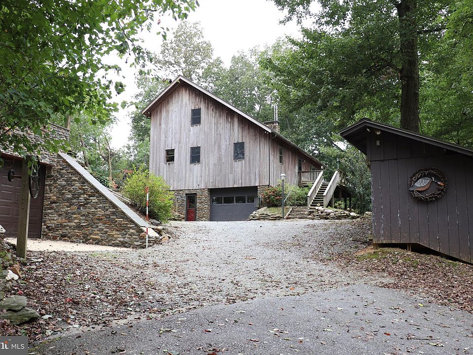 This country retreat is a must-see!  It's unique features like custom built-ins, 2-story stone fireplace, knotty pine paneling, cedar lined closets, standing metal seam roof, Wood Master auxiliary heater, garden shed, and raised bed gardens make this property one-of-a-kind. The wrap-around deck allows you to take in all of the beautiful views that this 2-acre property has to offer. The main floor has a mudroom/laundry room, eat-in kitchen, bedroom, full bathroom, huge living room, and custom built-ins throughout. Walk out the French doors to enjoy the serenity of the back deck and panoramic views of the property. The second floor offers a huge loft bedroom with a second full bathroom, multiple closets, and a balcony off the back of the house. The custom woodwork and massive exposed wooden beams that run throughout the home are stunning.  Whether you make this a second/country home or your primary residence, you will truly feel at one with nature in this country retreat.  Other unique features of the property include a central vacuum, laundry shoot, root cellar, and second detached garage. Don’t miss out on this once-in-a-lifetime property! Estate Sale being sold "As Is"
