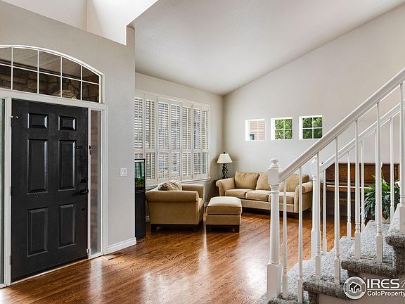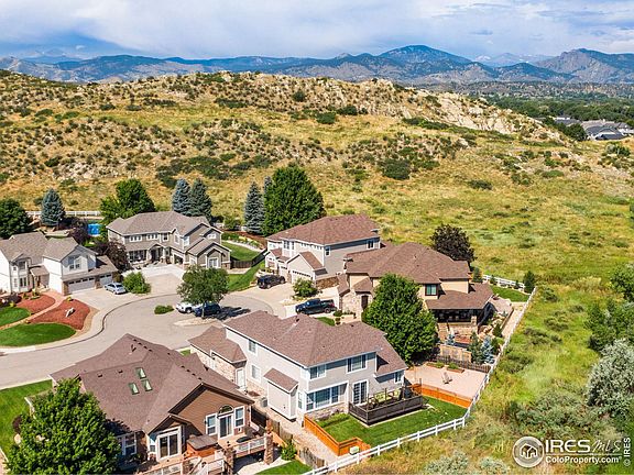 Scenic Beauty against the backdrop of the Rocky Mountains. Nestled in a picturesque area on the 13th Fairway of Mariana Butte Golf Course. Updated home featuring hardwood floors throughout the formal living area, dining, kitchen, and family room and powder bath. The kitchen has granite surfaces, subway tile backsplashes, Bosch appliances, Copper sink and kitchen pantry. Eat in kitchen area opens up to a full glass slider to the rear yard with views over water to the course. The family room has ample easterly natural light and gas fireplace. The upper level offers a private owners suite with 5 pc bath updated with Quartz countertops, subway tile, soaking tub and large walk-in closet. Large 2nd and 3 bedrooms (updated carpet) are served by a 2nd 4 pc bathroom (updated Luxury Planking). Full unfinished basement with future custom layout options. Completely Insulated and Drywalled 3 car (767 sqft) garage with new wood tone doors. The exterior has updated landscaping with sprinklers including drip irrigation, and a fully fenced rear yard.